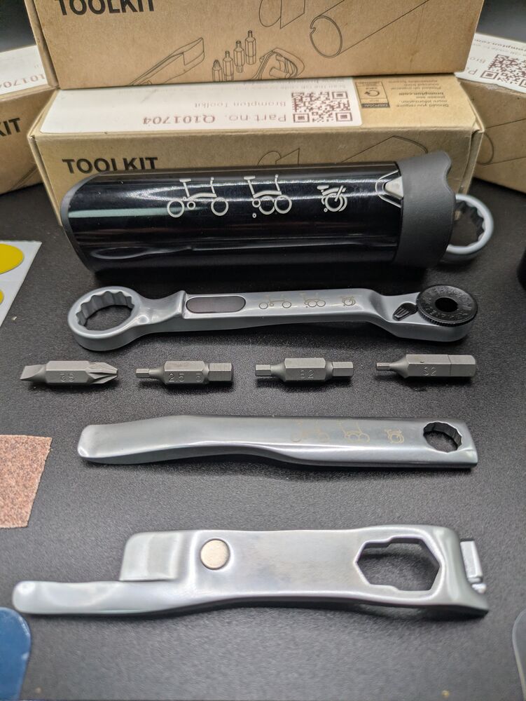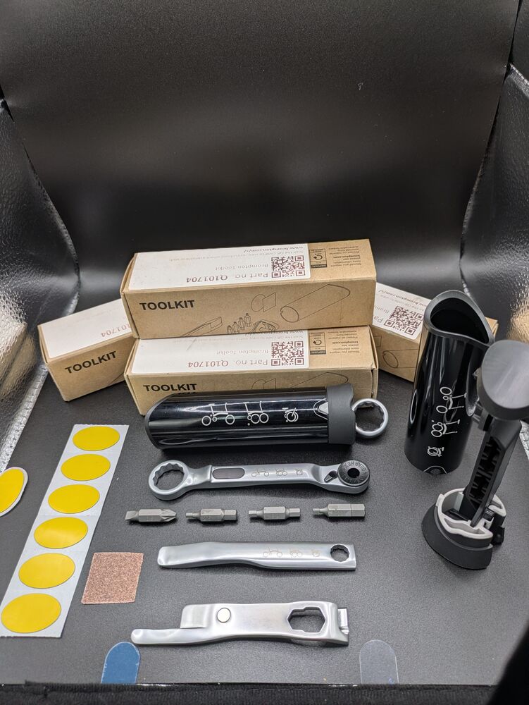 | Description | The Brompton Bike Repair Toolkit contains everything you need to fix a puncture and make running repairs and adjustments to your bike. Weight From 0.21 kg Fitting Fits inside the front frame tube in a neat, enclosed package on all A line, C line and P line bikes (made after 2004) Note This toolkit does not fit in the mainframe of the T line and G line bikes. The Toolkit is not compatible with bikes built prior to 2004, as these have a shorter wheelbase than current bikes Compatibility This toolkit does not fit in the mainframe of the C, P, T line power by e-Motiq and G line bikes. |